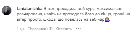 Варто зазначити, Лілія Капріян своє обурення винесла назагал в Інстаграмі. Як виявилось, незадоволена курсом від блогерки не тільки вона. Є й дівчата, які брали кредит з надією на якісне навчання, натомість отримали тільки обіцянки.