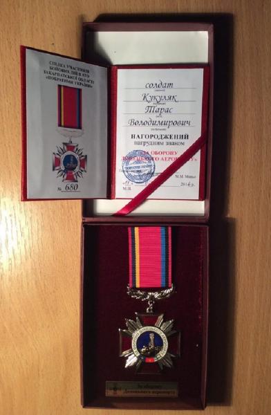 Франківського “кіборга” Тараса Кукуляка нагородили нагрудним знаком “За оборону донецького аеропорту”.
