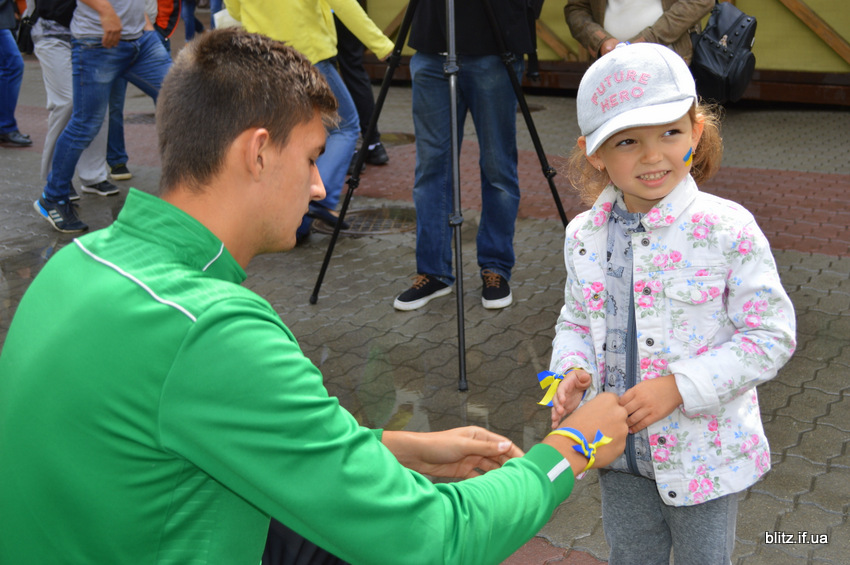 Окрім того гравці «Прикарпаття» розповідали людям про рідну команду, чіпляли синьо-жовті стрічки та запрошували на найближчий футбольний матч, який відбудеться вже 26 серпня.
