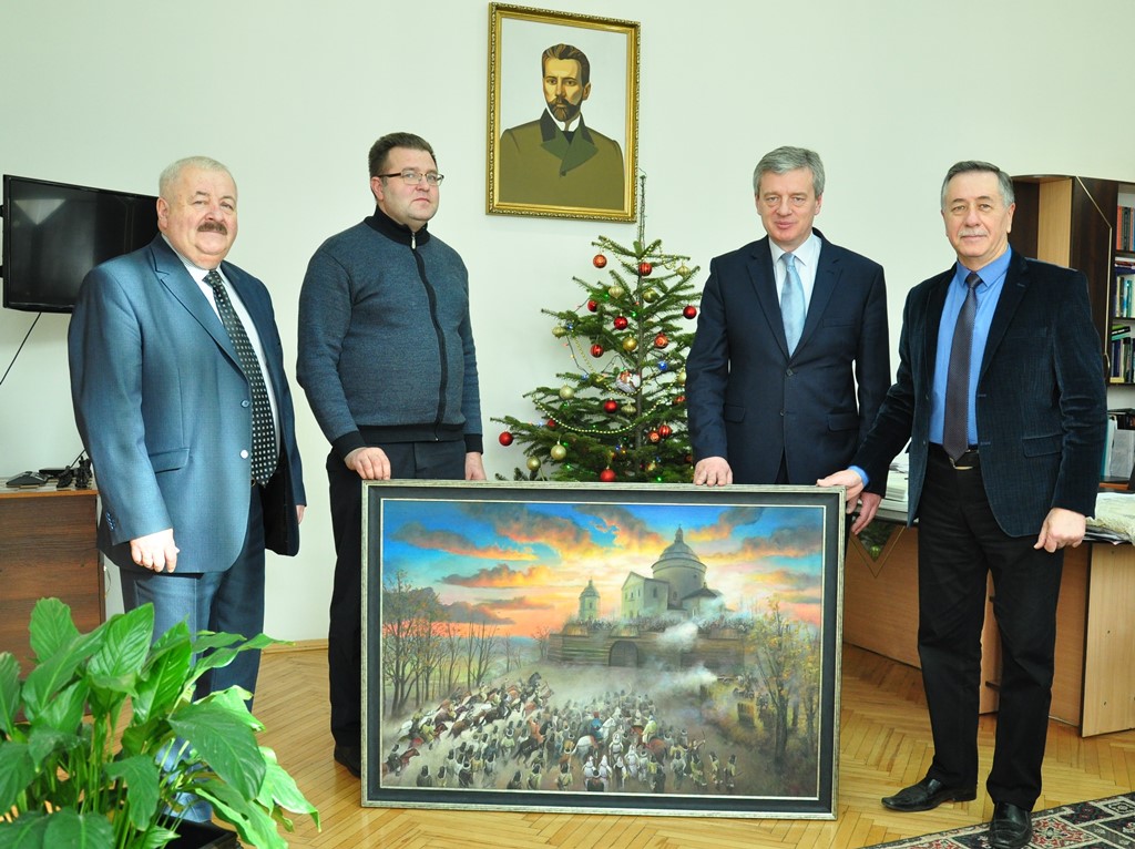 2 січня під час зустрічі ректор університету Ігор Цепенда передав ігуменові Гошівського монастиря Отців Василіян отцю Вінкентію Слободяну унікальну картину «Оборона Ясної гори».