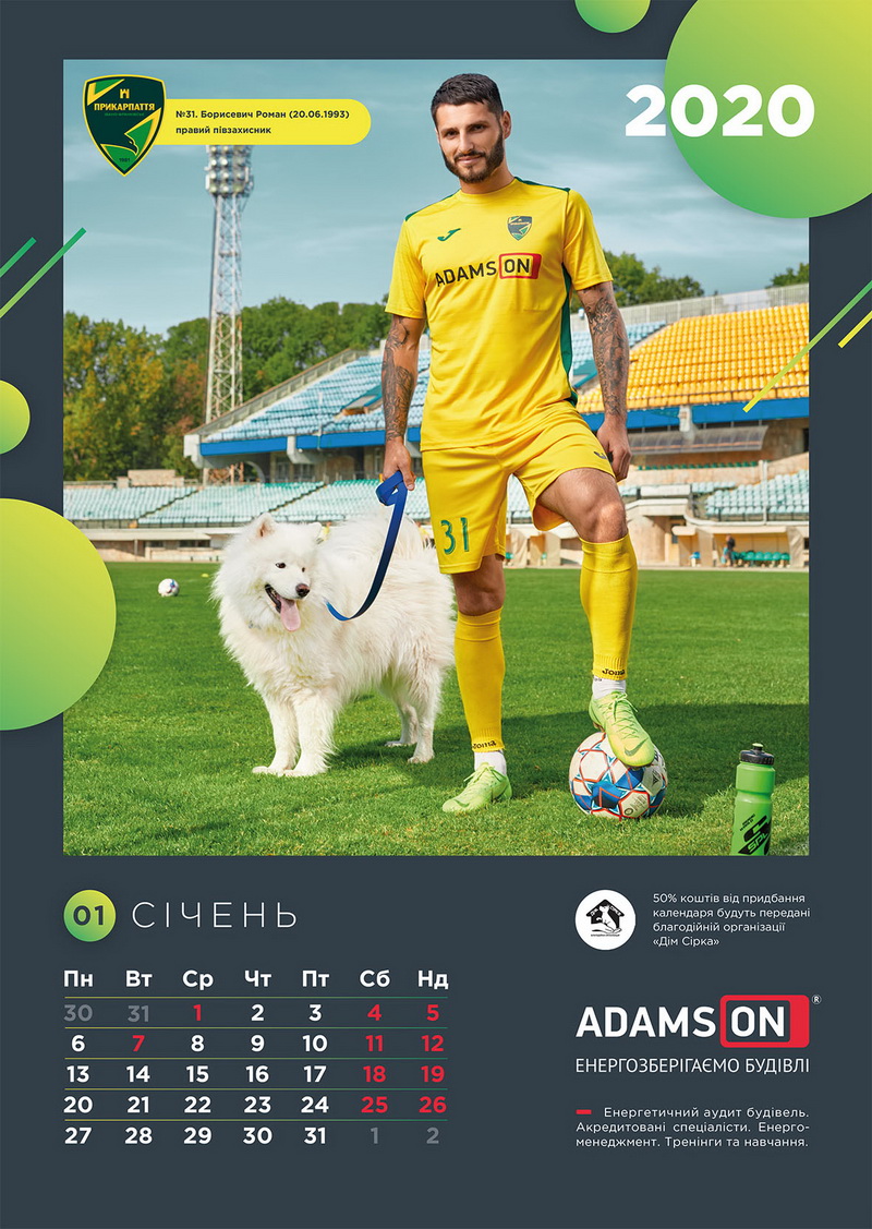 У веселій фотосесії прийняли участь футболісти ФК «Прикарпаття» і цуценята та кошенята із «Дому Сірка», які майже всі до моменту виходу календаря знайшли своїх господарів!