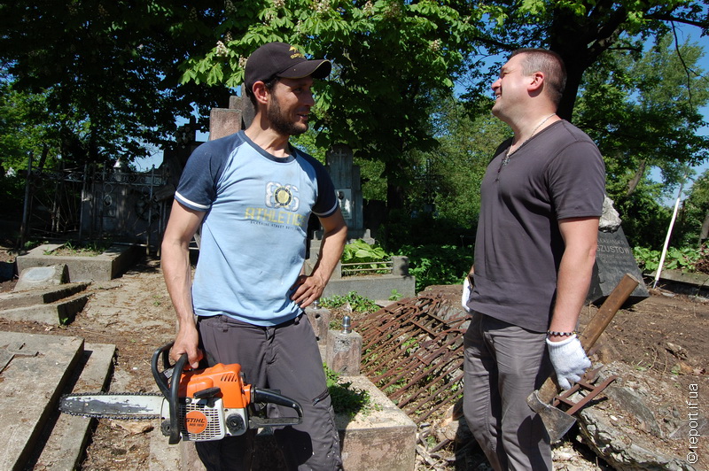 Суботнього ранку на старому калуському кладовищі кипить робота – чути звуки бензопили, стукіт сокири, шуршання лопати. На цвинтарі порядкують Василь Фіцак та Олександр Коваль. Розкопують надгробки, обрізають плющі, косять траву, вивозять сміття. І так щосуботи з вересня минулого року, пише Репортер
