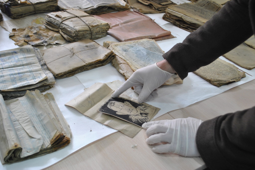 Біла рукавичка опускається у старий польський бідон. Звідти виглядає книга з історії та акуратно перемотані мотузкою згортки документів. Побіжний огляд знайденого дозволяє стверджувати, що матеріали містять дані про діяльність УПА на теренах Львівської, Тернопільської областей та Закерзоння. Можна припустити, що вони були передані для головнокомандувача Романа Шухевича, який довгий час перебував на Рогатинщині. Серед давніх артефактів виявлено унікальний шарж головнокомандувача, імовірно, виконаний чорнилом. Низку документів радянського зразка, трофеї, до прикладу, плакат чеською мовою, звіти та протоколи служби безпеки. Крім того, фінансова звітність та касова документація.
