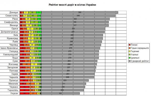 "На першому місці - Донецьк. На другому - Севастополь. Порадували Рівне і Вінниця, які увійшли в п'ятірку, обігнавши великі міста типу Одеса, Дніпропетровськ, Київ, Кіровоград і Львів. Франківськ теж не пасе задніх - 12 місце з 26.