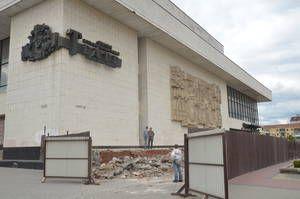 Спочатку з’явилася інформація про те, що Івано-Франківський академічний обласний музично-драматичний театр ім. івана Франка почнуть ремонтувати в квітні, та, зважаючи на українські реалії, справа зрушила з мертвої точки тільки в серпні, наприкінці літа і впритул до звичного початку сезону у всіх мистецьких закладах краю. Сьогодні театр зусібіч закутий у панцир металевого високого паркана. За ним кипить робота. Ми провели невеличку екскурсію по периметру будівлі: з центрального входу помітили один трактор і трьох хлопців, котрі неквапом, як вони висловилися, «вели підготовчі роботи до укладання мармуру». Микола, Ярослав і Дмитро не знали, куди поділися старі плитки, бо, кажуть, знімала їх інша бригада, а вони тут працюють всього кілька днів (пізніше ту плитку ми помітили у внутрішньому дворі).