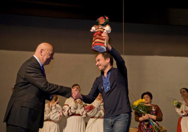 У підсумку директор театру подякував публіці за душевний прийом і подарував очільнику Луганщини оберіг, що є символом мудрості, берегині роду та зв’язку між поколіннями – ляльку-мотанку, яка стала й символом вистави.