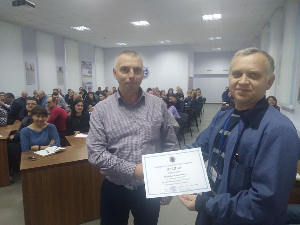 Під час проведення наради завідувачу відділу досліджень матеріалів, речовин і виробів Івано-Франківського НДЕКЦ МВС Говері Василю Антоновичу вручили подяку Міністерства внутрішніх справ України за підписом міністра А.Б. Авакова за сумлінне ставлення до виконання посадових обов’язків, ініціативу та наполегливість.