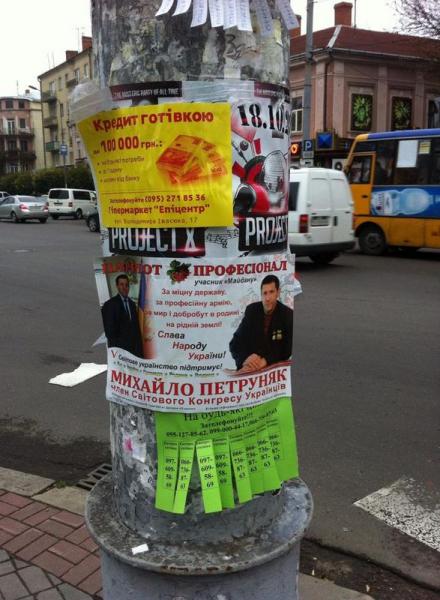 Як відомо, енергокомпанія ще раніше звернулась до кандидатів у народні депутати та політичних партій з пропозицією на платній основі розклеювати агітацію на стовпах. Натомість енергетики обіцяють віддати зароблені гроші на допомогу в зону АТО. Та, схоже, більшість претендентів на крісло у парламенті вирішили й надалі безкоштовно і, водночас, незаконно засмічувати місто.