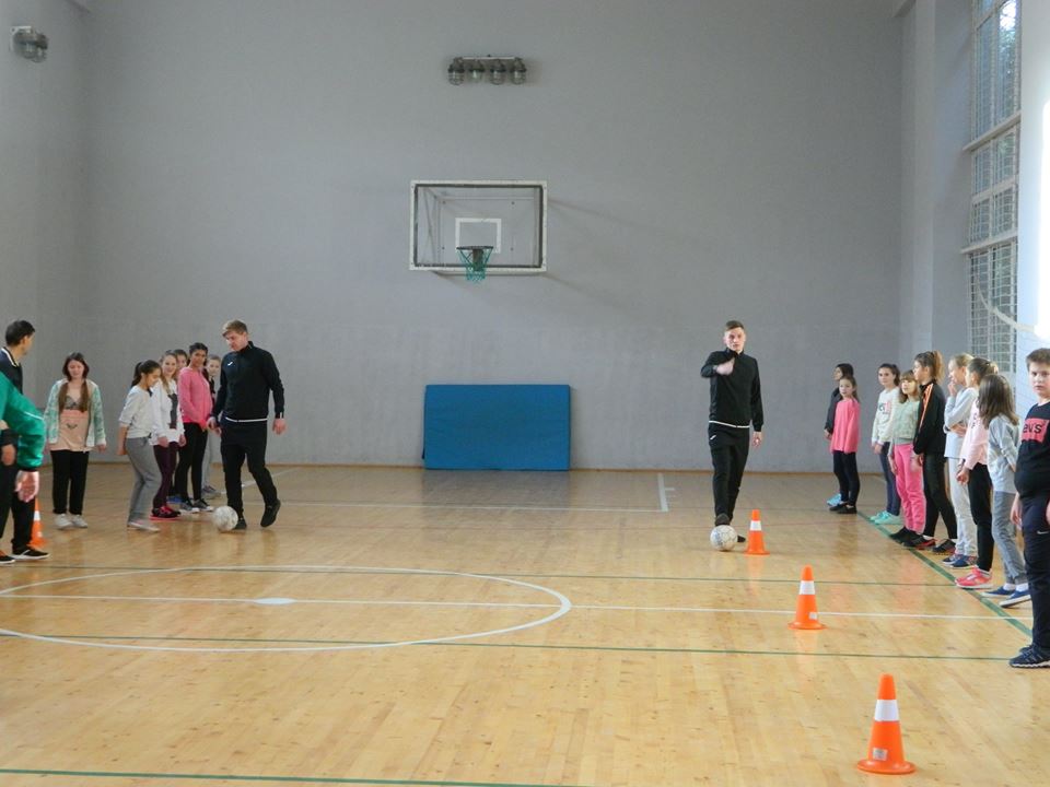 Гравці показали школярам, як виконувати різні футбольні маневри, а опісля діти показали на що здатні.