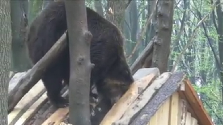 Кумедне відео, як непосидючий ведмедик з Галицького нацпарку попав у халепу
