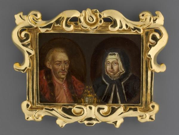При слові портрет, а ще й парний, уява одразу малює велику картину на півстіни. Однак тут маємо мініатюру 8,8 х 13 см, техніка – олія, матеріал основи – мідь. Хронологічні межі її створення розмиті, десь 1700-1800 років.