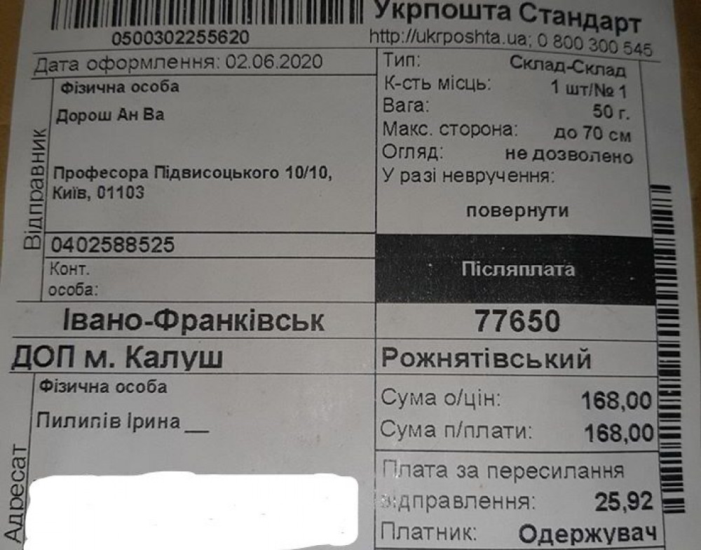 “Вони звідкись мають наші дані, номери телефонів і шлють всяку фігню. На пошті сказали ,що в селі моя така посилка не перша. Додаю фото поштової наліпки”.
