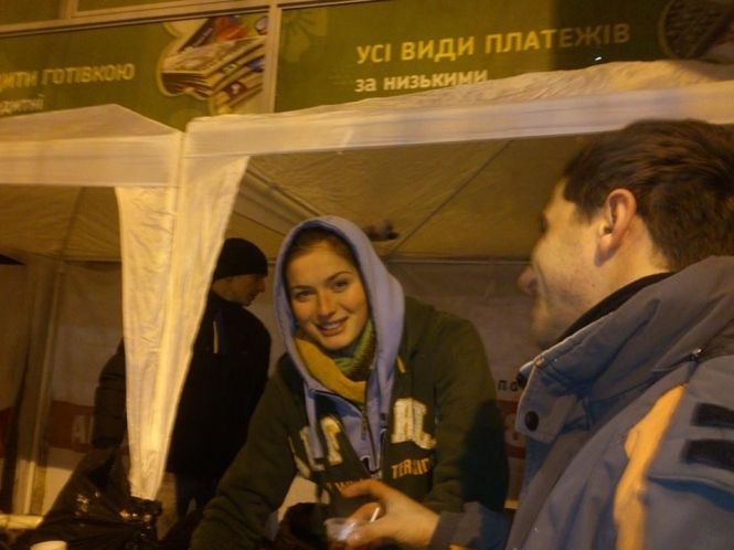 «Міс Україна 2013» на Євромайдані пригощає мітингувальників чаєм