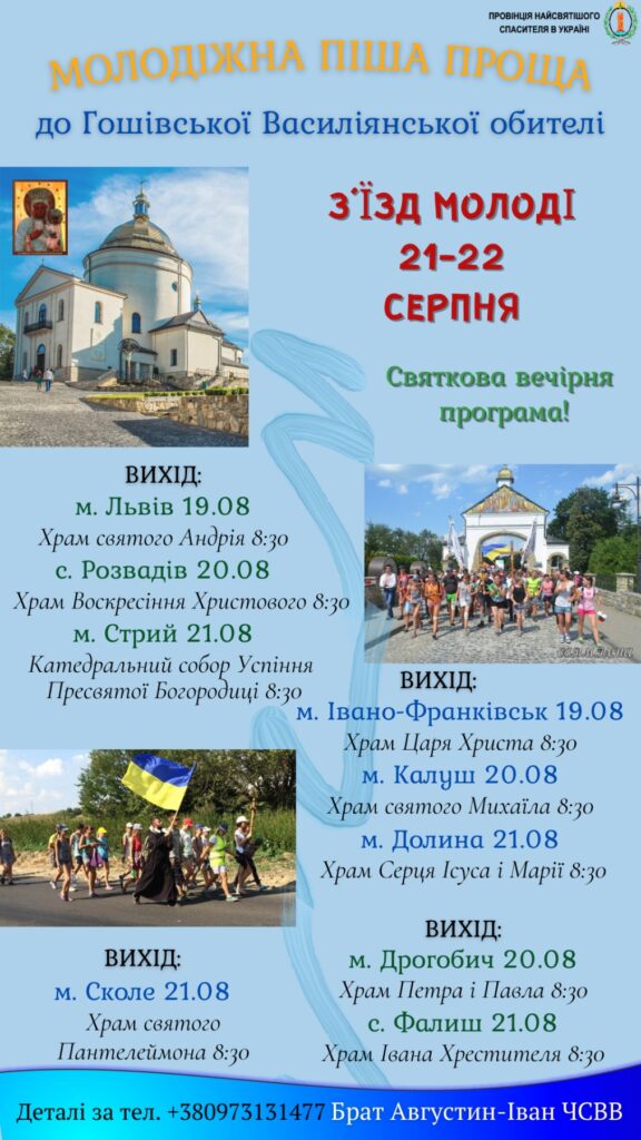 «Маємо гарну новину для усіх прочан та паломників: нас знову збирає наша Небесна Мама, яка кличе своїх чад до Гошева на щорічні молодіжні чування та пішу прощу», – запрошують молодь на своїй сторінці отці-васильяни.