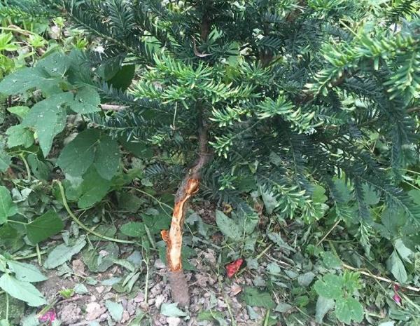 "Тис ягідний та сакура дякують комунальним варварам з мотокосами за покіс трав і молодих дерев. Мабуть комунальники посадили занадто багато сакур та тису, тому деякі не ними посаджені вирішили знищити. Ця байдужість, та ставлення до роботи двірників, косарів і будівельників не має меж",- обурюється франківець.