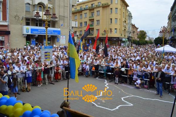 Нагадаємо, святкування Дня Незалежності в Івано-Франківську розпочалось ранковою акцією "Музичні балкони" та урочистим відкриттям Фортечного провулку. Опісля франківці та гості міста пройшлися урочистою ходою з велетенським прапором.