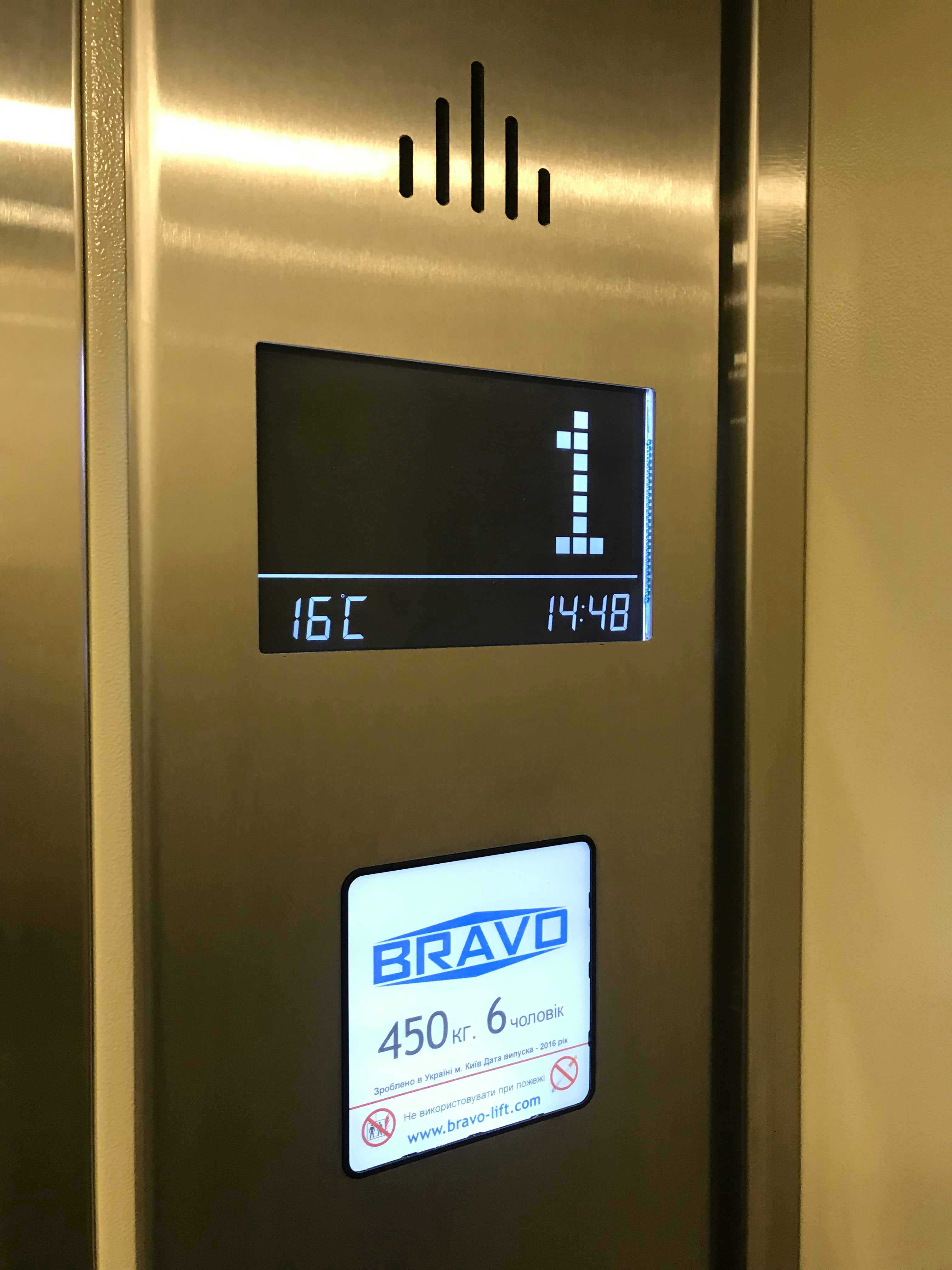 Ліфт фірми «Bravo» вміщує до 6 осіб. Загалом скористатись ліфтом можуть всі відвідувачі.