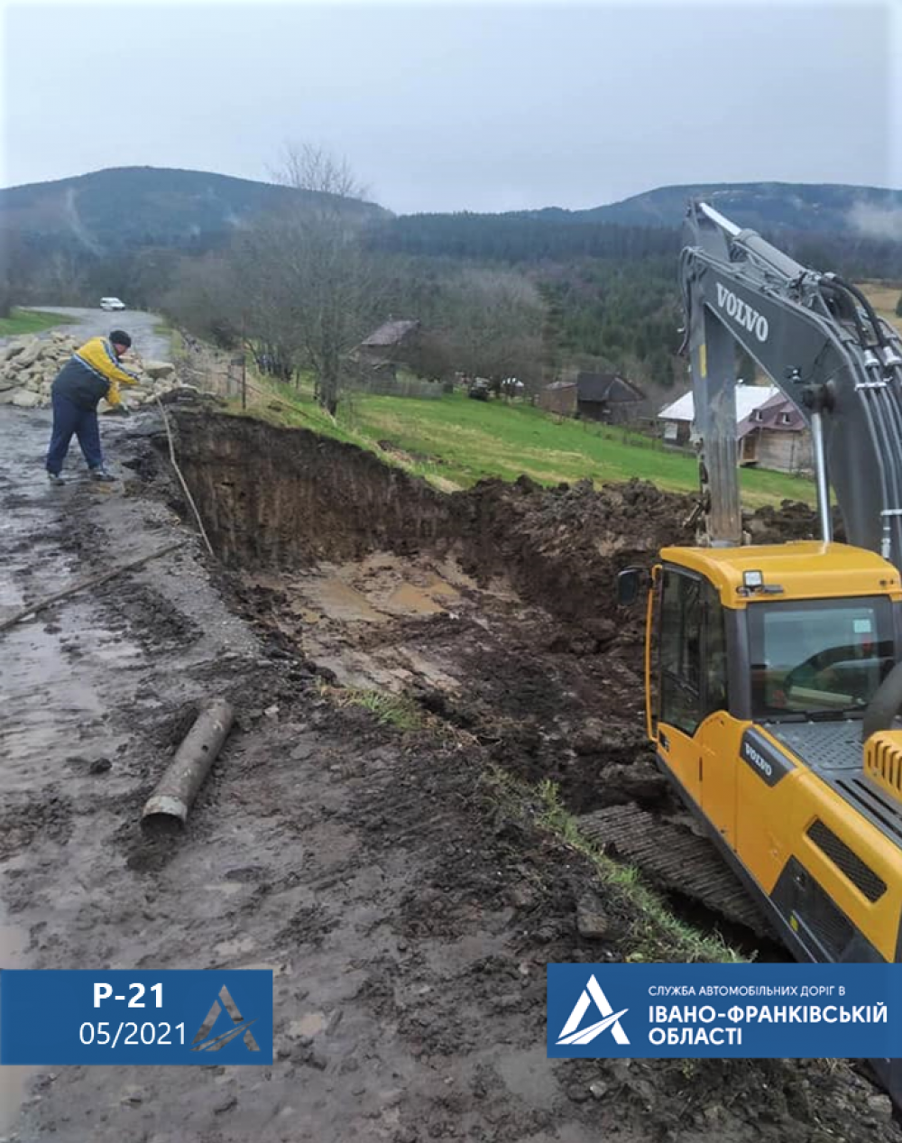 Із настанням сприятливих погодних умов приступили до ліквідації наслідків зсуву. Провалля ліквідують негабаритним камінням. Далі на цій аварійно-небезпечній влаштуємо підпірну стінку у вигляді габіонної конструкції.