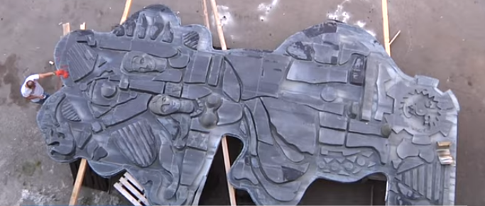 Він працював над ним півроку. На скульптуру витратив 1,5 тонни металу, 85 листів латуні, 80 кг паяльного олова, а також використовував чорний метал. У суботу, 28 грудня, барельєф повернули на оновлений фасад, пише Репортер.