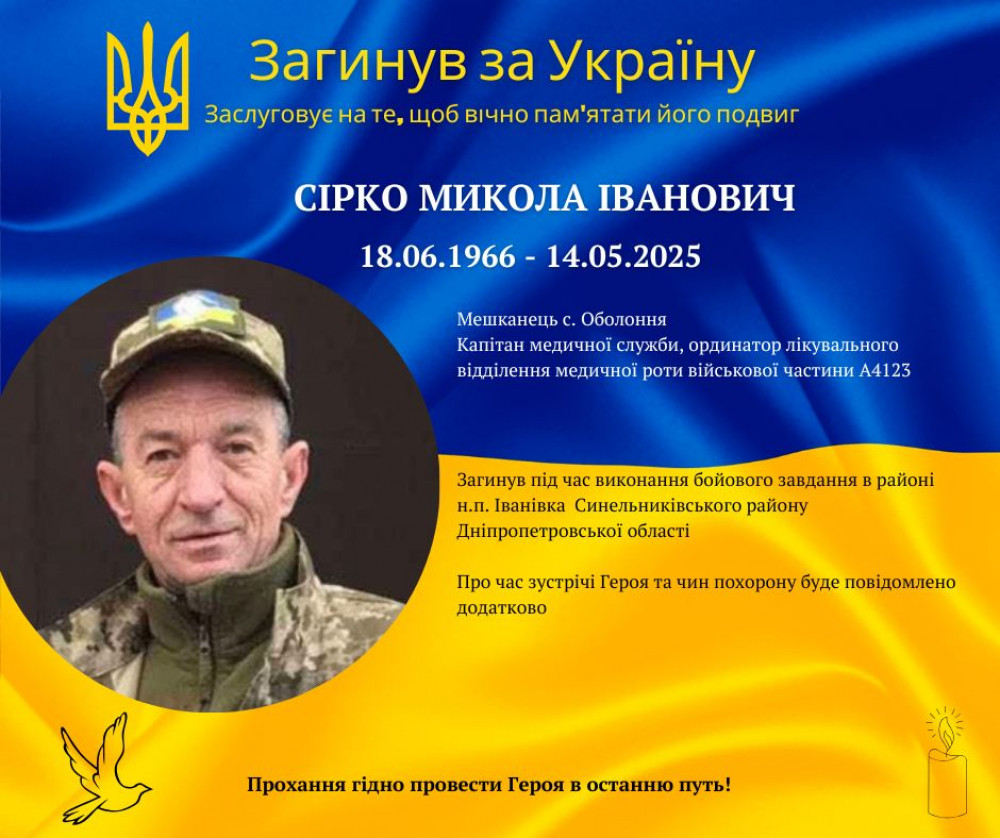 Війна забрали життя мешканця Долинської громади з села Оболоння - СІРКА МИКОЛИ.