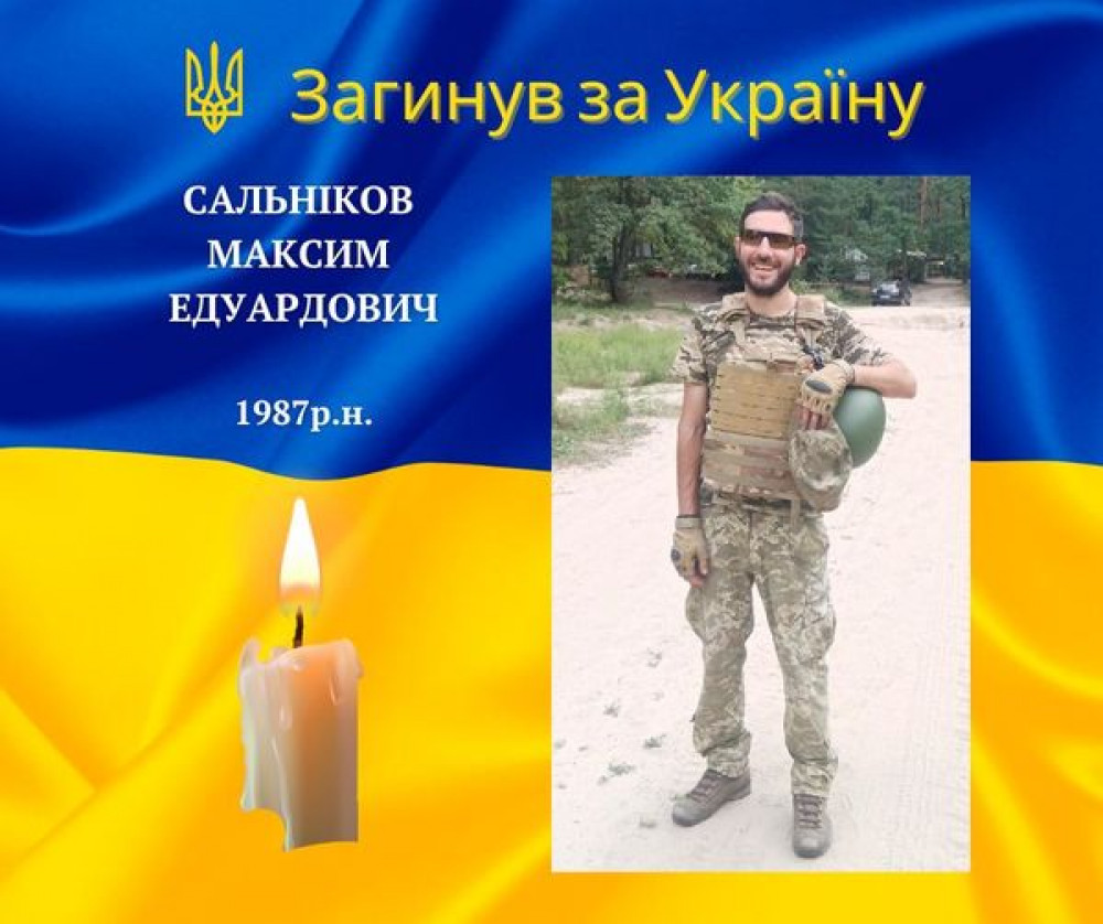 "Молодший сержант САЛЬНІКОВ МАКСИМ ЕДУАРДОВИЧ, 1987 року народження, інспектор прикордонної служби 2 категорії – інструктор кінологічного відділення відділу прикордонної служби «Яблунівка» (тип В) військової частини 2142. Був призваний на військову службу 13 травня 2022 року, загинув 19 жовтня. Ця болюча звістка від втрати мужнього захисника нещадно крає серце та розриває душу. Висловлюємо глибокі співчуття та розділяємо біль втрати разом із родиною та рідними загиблого захисника. Вічна пам'ять Герою! Втрата непоправна..."- написав мер.