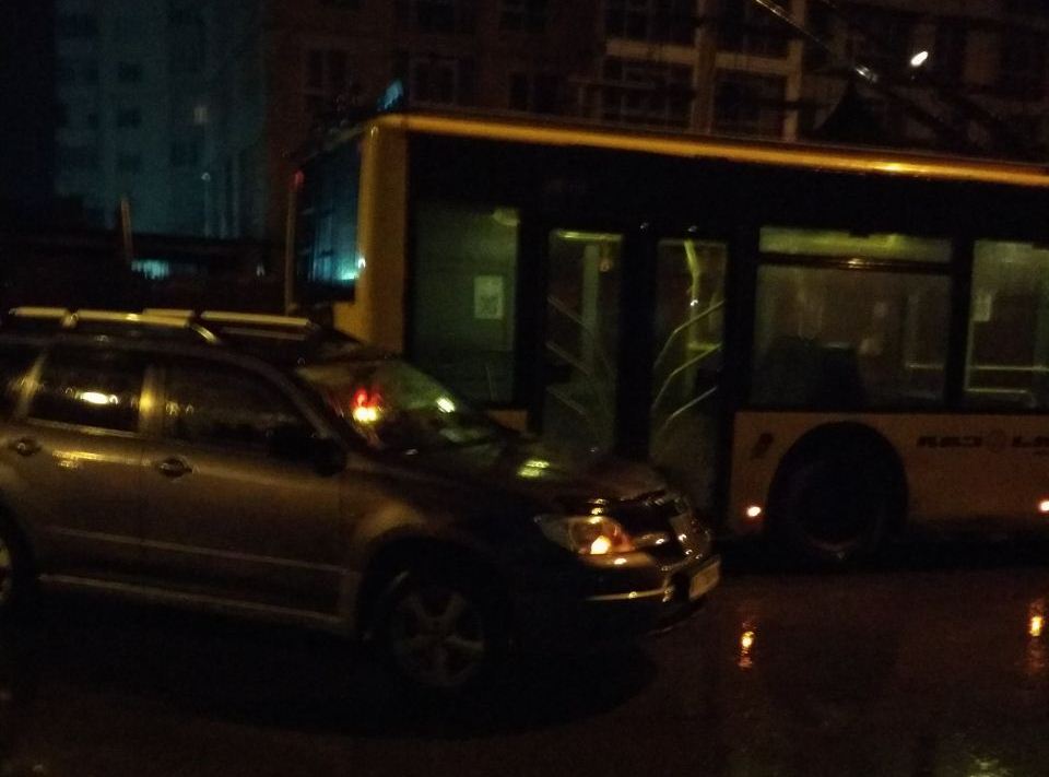 На вулиці Хіміків не розминулись Mitsubishi Outlander та тролейбус.