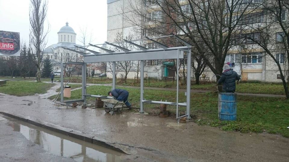 Не зважаючи , що місяць грудень, погода дозволяє робити роботу. Ставимо зупинку на Івасюка. Вітер і дощ тепер не проблема для пасажирів. Згодом буде змонтовано лавочки і скло. Закладні повинні зміцініти. Наступна зупинка, шестиметрова , буде встановлена на вул.Чорновола . Готуємо титул на 2018 рік. Також проводимо інвентаризацію зупинок щодо наявності урн, навісів, знаків, стану обладнання. Робимо місто комфортним.