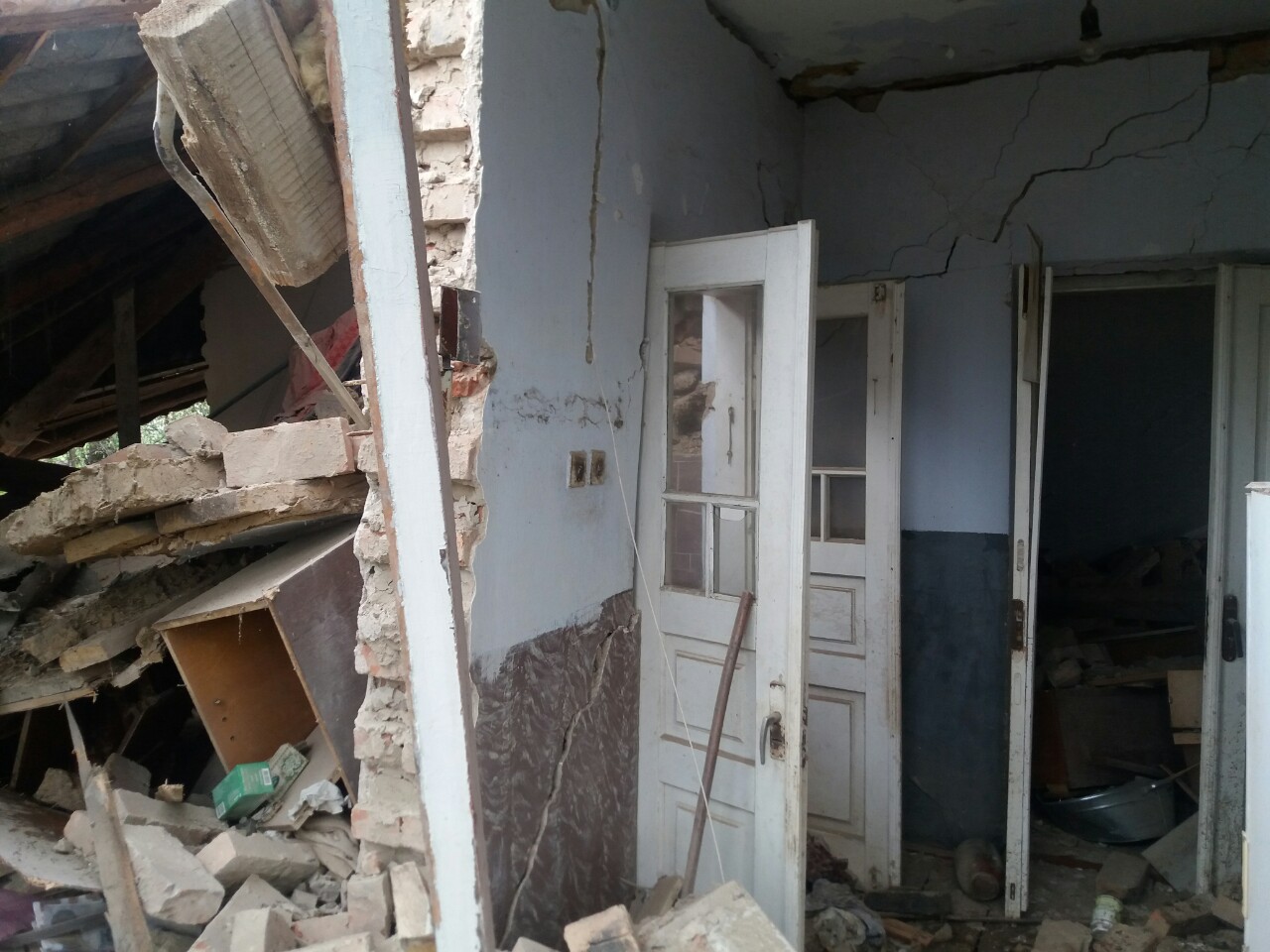Будівля розміром в плані 10х8м., стіни цегляні перекриття дерев’яне, крита шифером по дерев’яній обрешітці. На місці події відбулося руйнування частини житлового будинку орієнтовно на площі до 40 м.кв. Під час вибуху в будівлі знаходилася 87-річна власниця, яка отримала травми.