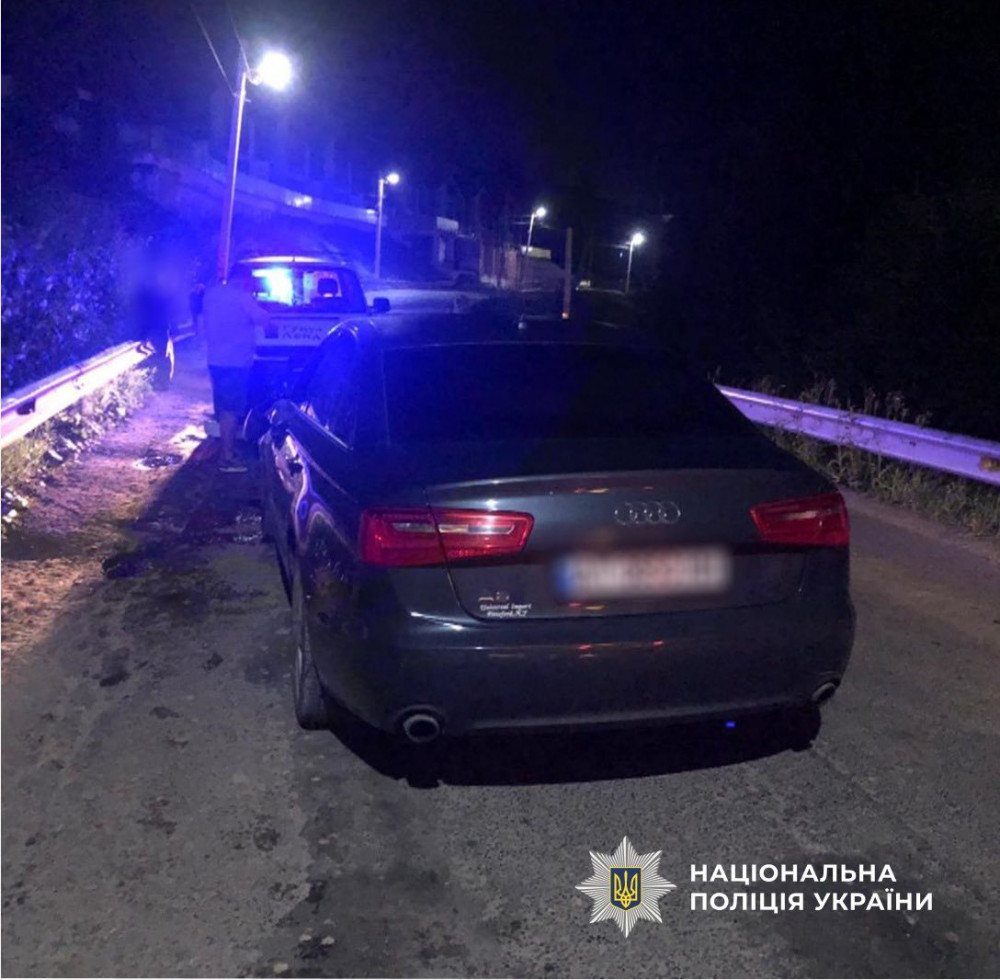 "Керуючи автомобілем «Audi A6», здійснив наїзд на 41-річну жінку, місцеву мешканку, яка рухалася узбіччям проїзної частини дороги. Після цього водій, намагаючись залишити місце ДТП, зіткнувся з автомобілем «Toyota Corolla», проте продовжив рух. Згодом він допустив лобове зіткнення ще з одним транспортним засобом - «Volkswagen Т4». Унаслідок аварії жінка-пішохід отримала тяжкі травми та була госпіталізована до обласної клінічної лікарні",- кажуть у поліції.