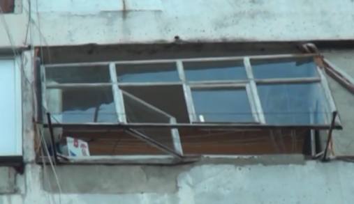 Як з`ясувалося, на 7 поверсі 9-ти поверхового житлового будинку, звисала дерев`яна балконна рама, що становила загрозу падіння.