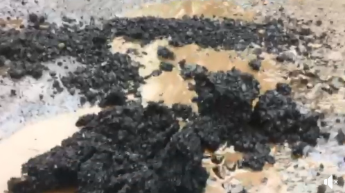 Зокрема, відео з латання ям у болото у мережу виклав активіст Віталій Мацьоцький.