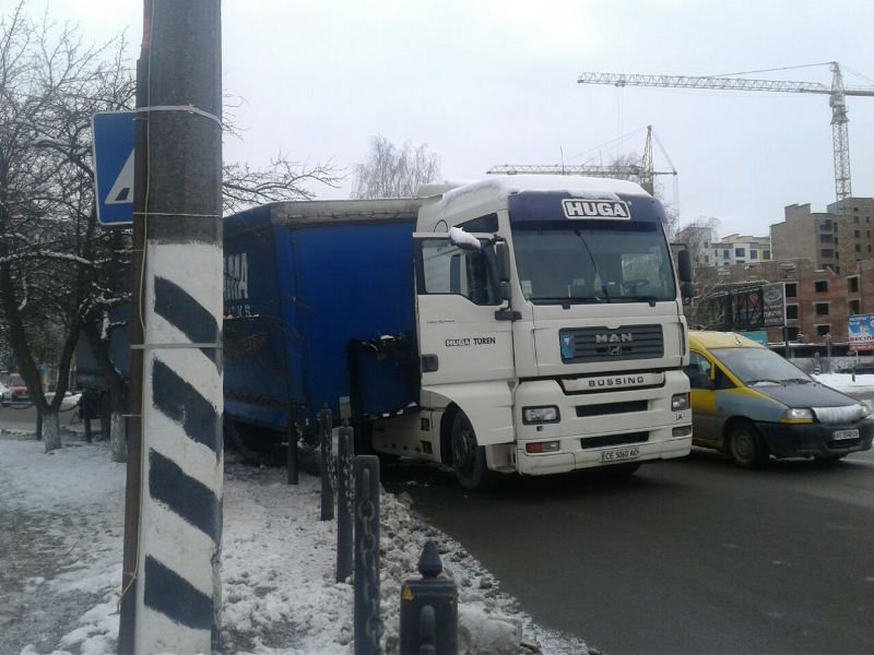 "Водій фури "Ман" перед виїздом не переконався в правильності кріплення причіпу, Як наслідок на кільці Мазепи при повороті на Набережну він злетів з тягача та зніс два стовпчики огорожі", - коментує прес-секретар поліції Микола Гурак.