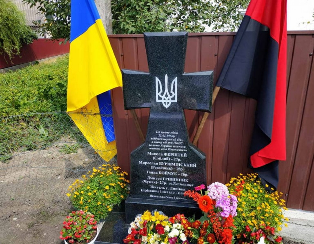 Тож, на хресті закарбували імени чотирьох повстанців, які загинули у тому бою у 1956 р. Це двоє жителів Пшеничників - 27-річний Микола Ферштей на псевдо Смілий та 15-річний Мирослав Буржмінський із псевдонімом Смілий, один повстанець із Тисмениці — 27-річний Дмитро Грибінник на псевдо Чумак.