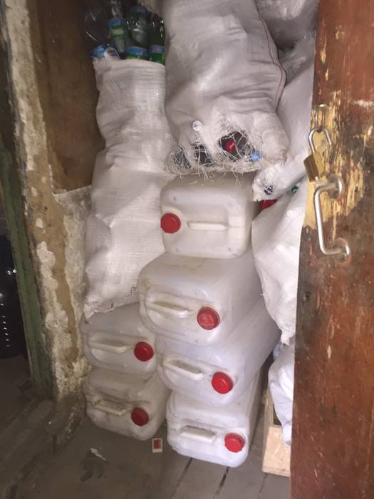 Під час обшуку правоохоронці вилучили у ділків обладнання, що забезпечує масове виробництво фальсифікату та майже тисячу літрів готової продукції