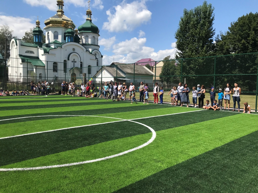 Освятили спортивну споруду отець-декан УПЦ КП Олег Траско та отець УГКЦ Юрій Зеленчук. Завершилося свято футбольним турніром.