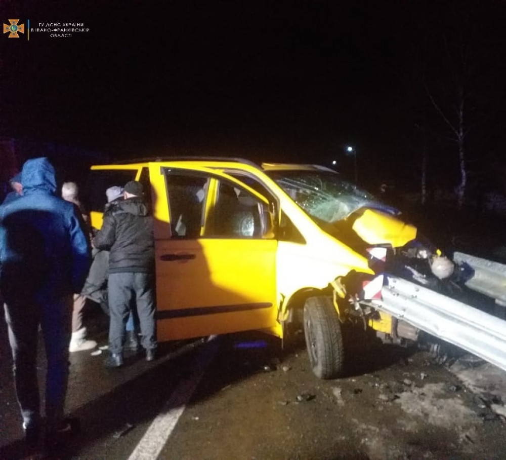 На Надвірнянщині мікроавтобус врізався у відбійник. Водія "вирізали" рятувальники