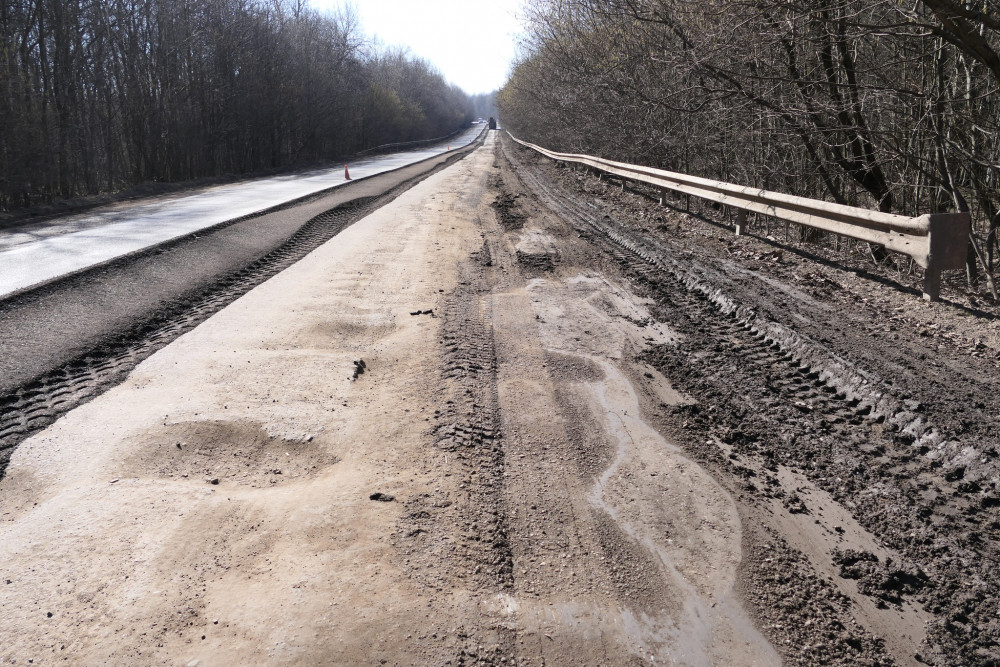 Розпочато фрезерування зношеного шару асфальтобетону – підготовчий етап перед укладенням нового покриття. Наступний етап – профілювання автогрейдером, зміцнення основи покриття з додаванням цементу та щебенево-піщаної суміші, влаштування асфальтобетону.