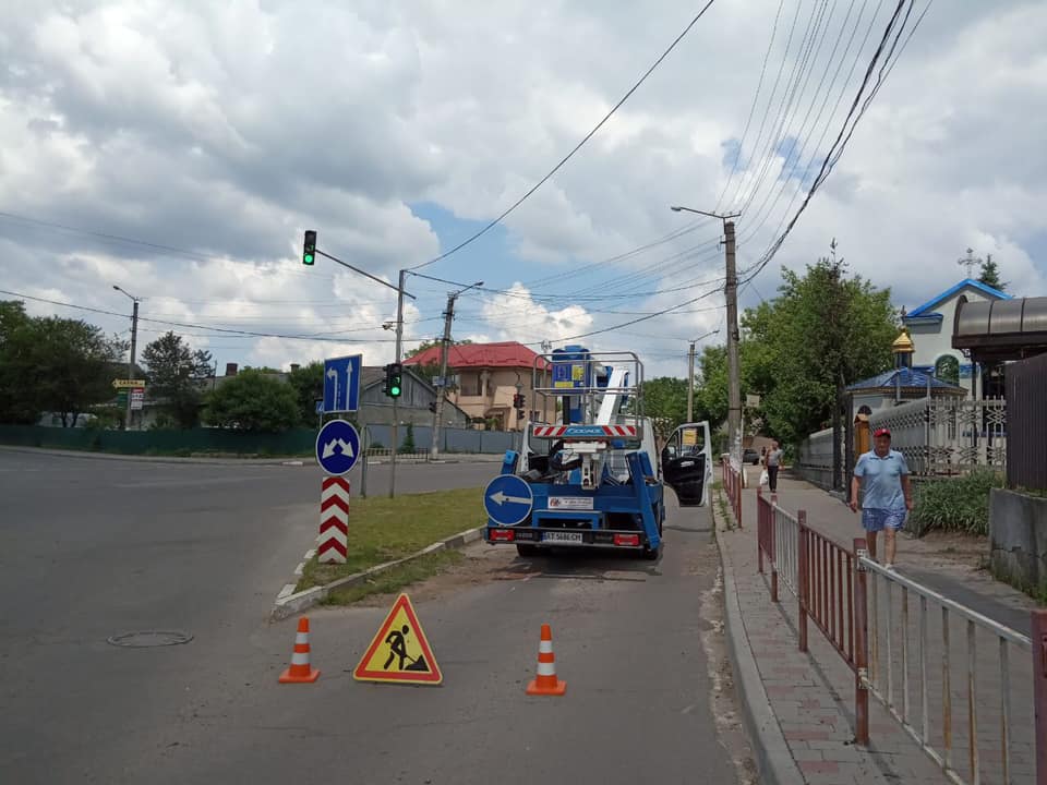 КП Івано-Франківськміськсвітло встановлює новий світлофор на проблемному перехресті.