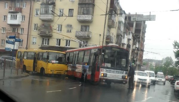 Так, близько 10 години на перехресті вулиць Дністровська — Василіянок маршрутка №34 врізалась у тролейбус №6.