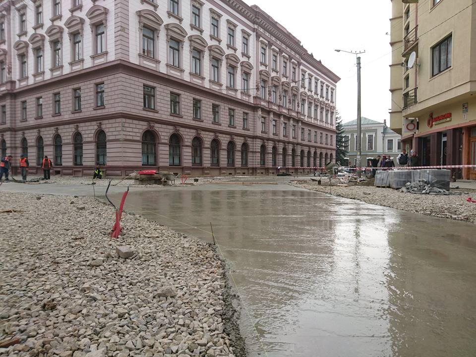 "Відновлено роботи з влаштування бетонної основи під майбутнє покриття. Більш того, з обох сторін медуніверситету розпочато встановлення гранітної бруківки. Приємно бачити, як у вулиць з'являється нове "обличчя", - зазначив Рогів.