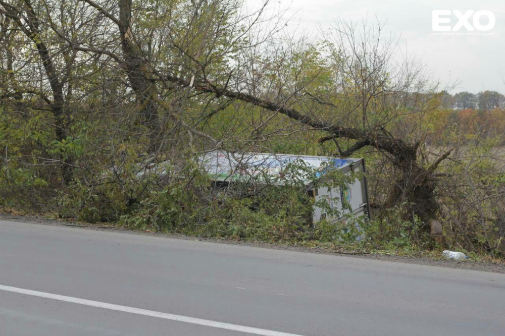 На Прикарпатті вантажівка злетіла у кювет та перекинулась. Є травмовані