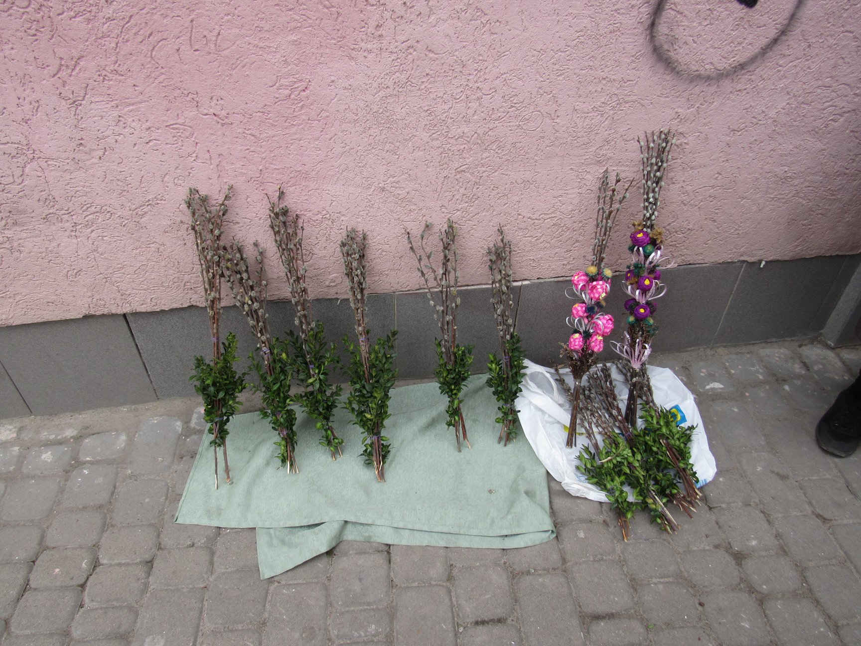 Бабуся Анна розповідає, що нарізує вербові гілки з дерев, що біля річки Бистриця, несе додому, складає в пучки. За півгодини в’яже 50 штук вербових “букетів”. Вони нічим не прикрашені, лише знизу є кілька зелених гілочок барвінку, його жінка вирощує на городі. Такі пучки пані Анна продає за 10-15 гривень. Над дорожчими, прикрашеними, трудиться довго.