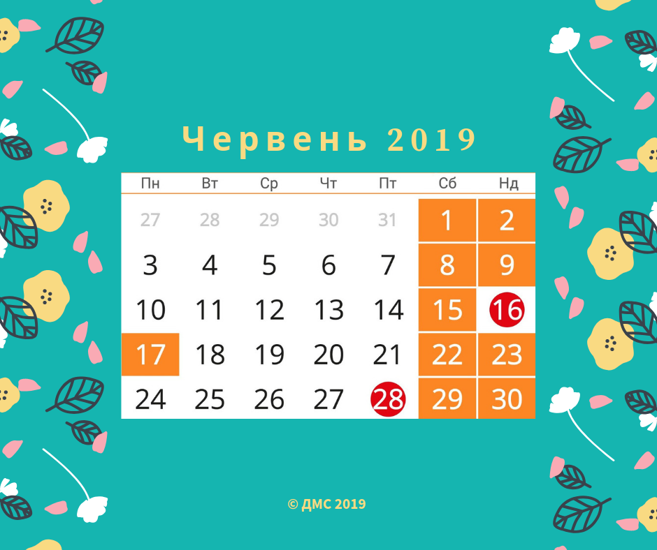 - 16, 17, 18 червня (неділя-вівторок) – у районних та міських підрозділах ДМС, які у звичайному режимі працюють з вівторка по суботу. Звертаємо увагу на те, що робочий день напередодні Трійці (15 червня) для територіальних підрозділів ДМС буде скорочено на одну годину, як передсвятковий день.