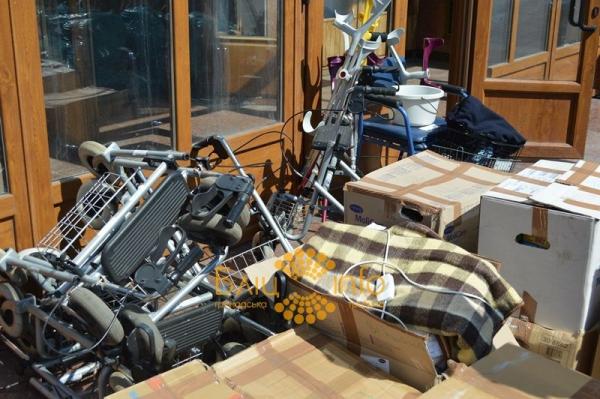 Сьогодні автомобіль, повністю навантажений гуманітарною допомогою, прибув під стіни адмінбудівлі. Постільну білизну, рушники, одяг, катетери, милиці і ще багато інших необхідних речей передали «самооборонівцям». Ті, зі свого боку, обіцяли доставити зібране безпосередньо в руки військових. Зокрема, координатор «Самооборони», Юрій «Тихий», розповідає, що вони нещодавно повернулися зі сходу, а всі зібрані речі потрапили до солдатів.