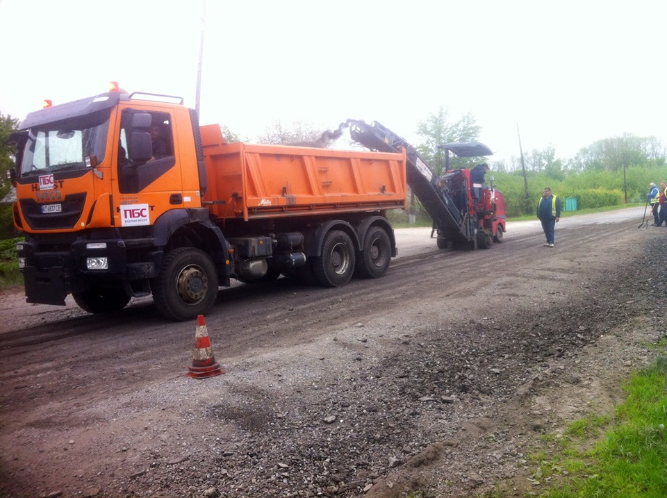 Автодорожники розпочали з підготовчих робіт картами – фрезерування ділянок дороги зі знищеним дорожнім одягом. Наступний етап – влаштування асфальтового покриття.