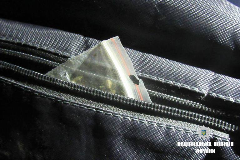 У ході перевірки салону автомобіля у сумці 22-річного пасажира при огляді виявлено полімерний пакет, в якому знаходилась подрібнена речовина рослинного походження, ззовні схожа на наркотичну речовину "марихуану".