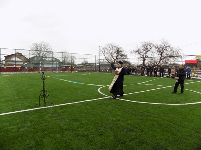 Освятив спортивну споруду настоятель храму УГКЦ о. Богдан Киктик, який помолився та поблагословив майданчик.