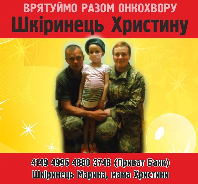 А все заради збору коштів для шестирічної Христини Шкіринець (діагноз – гостра В-клітинна лімфобластна лейкемія) – доньки учасників АТО, бійців 10-ї Коломийської окремої гірсько-штурмової бригади Марини Шкіринець та Андрія Гринчука.