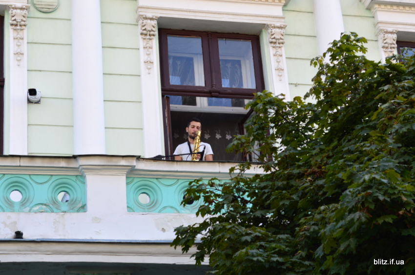 На стометрівці музиканти з балконів вітають франківців з Днем прапора