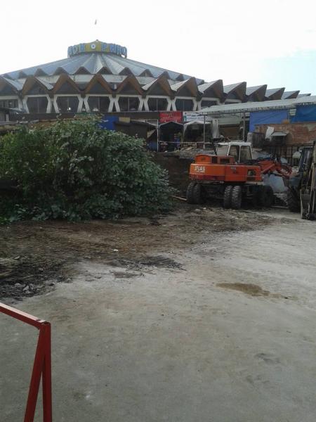 За інформацією Бліц-Інфо, на території ринку з боку заїзду на оптовий ринок орендар вирішив звести маштабний торговий центр. Для цього напередодні продавців з різноманітним крамом перенесли вглиб ринку, а територію огородили.